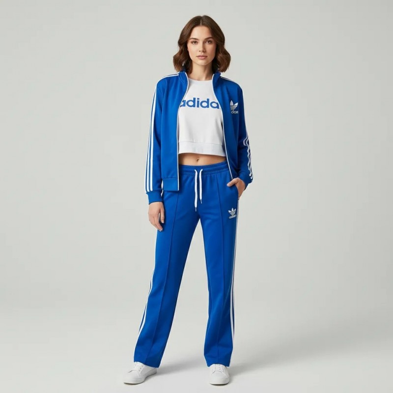 تقدم هذه البدلة الرياضية الزرقاء الكلاسيكية الراحة والأناقة، وهي مثالية للخروج غير الرسمي أو التمارين الرياضية. مصممة من قماش عالي الجودة، تضمن المتانة والملاءمة الرائعة. يتميز التصميم الأيقوني بوجود سترة بسحاب وسروال متناسق، كلاهما مزين بتفاصيل كلاسيكية.
