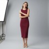 فستان ميدي بدون أكمام بلون بورغندي أنيق