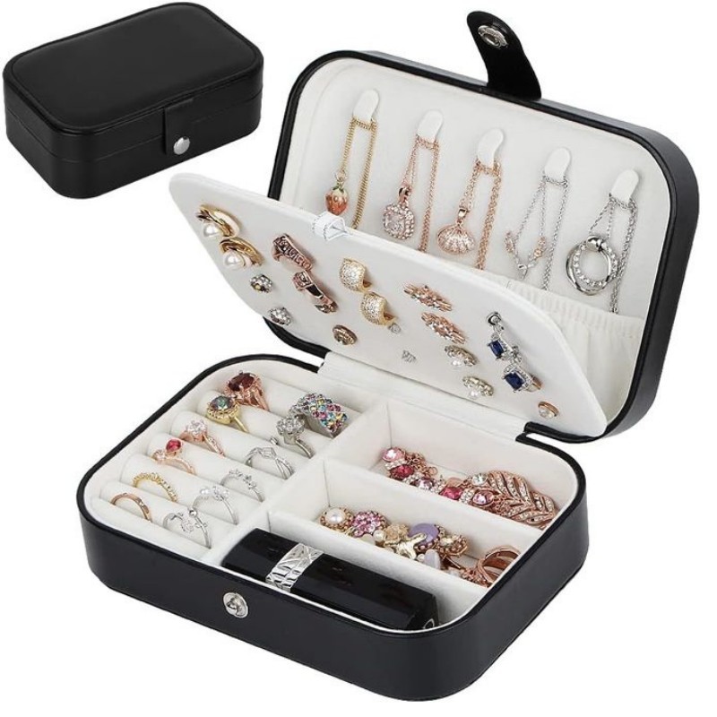 Gardez votre collection de bijoux magnifiquement organisée avec cette boîte à bijoux noire élégante, parfaite pour les bagues, les boucles d'oreilles et les colliers.