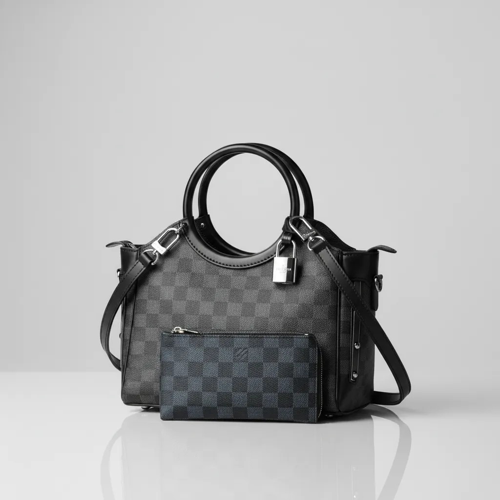Combinaison Noire Élégante avec Sac à Main de Designer